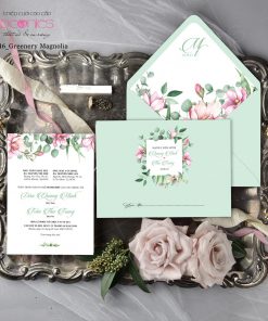 – Thiệp báo hỷ in 1 mặt + thiệp mời in 2 mặt + bao thư in 2 mặt, bạn có thể điều chỉnh loại giấy, kiểu in, phụ kiện (nếu có) theo tư vấn của Peonies.